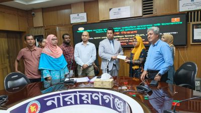 অতিরিক্ত জেলা প্রশাসক (সার্বিক) মোহাম্মদ আলমগীর হোসাইন এর সঞ্চালনায় চেক বিতরণ অনুষ্ঠানে বক্তব্য রাখেন, নারায়ণগঞ্জ সমাজসেবা অধিদপ্তরের উপ-পরিচালক মোঃ আসাদুজ্জামান সরদার, জাতীয় মহিলা সংস্থার নারায়ণগঞ্জ জেলা কর্মকর্তা ফারহানা কিবরিয়া।