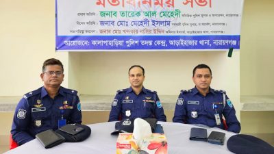 এস এম জহিরুল ইসলাম বিদ্যুৎ :নারায়ণগঞ্জ জেলার আড়াইহাজার থানার দুর্গম এলাকা হলো কালাপাহাড়িয়া ইউনিয়ন। মেঘনা নদী পার হয়ে যেতে হয় এই দ্বীপ ইউনিয়নে। ১৪ টি গ্রাম নিয়ে এই ইউনিয়ন গঠিত। প্রায় ৩০ থেকে ৩৫ হাজার জনগণ এই ইউনিয়নে বসবাস করেন। কালাপাহাড়িয়ার উত্তরে নরসিংদী জেলার সদর উপজেলা, পূর্বে ব্রাহ্মণবাড়িয়া জেলার বাঞ্ছারামপুর উপজেলা, দক্ষিণে কুমিল্লা জেলার হোমনা ও মেঘনা উপজেলা। নারায়ণগঞ্জ জেলা পুলিশ সুপার মোঃ জসিম উদ্দিন যোগদানের পর থেকেই নারায়ণগঞ্জ জেলার আইনশৃঙ্খলা উন্নয়নে বিভিন্ন কার্যক্রম অব্যাহত রেখেছেন এবং আইন-শৃঙ্খলা ধীরে ধীরে উন্নতির দিকে অগ্রসর হচ্ছে। তারই ধারাবাহিকতায় ২০ নভেম্বর ২০২৫ খ্রিঃ বিকেল ০৩.০০ ঘটিকায় কালাপাহাড়িয়া পুলিশ তদন্ত কেন্দ্রের হলরুমে মারামারি, চুরি, মাদক, জুয়া, বাল্যবিবাহসহ অন্যান্য অপরাধ নিয়ন্ত্রণে নারায়ণগঞ্জ জেলা পুলিশ সুপার মোঃ জসিম উদ্দিনের নির্দেশে আইন শৃঙ্খলা বিষয়ক মতবিনিময় সভা অনুষ্ঠিত হয়। এই অনুষ্ঠানে আড়াইহাজার থানার অফিসার ইনচার্জ মোঃ খন্দকার নাসির উদ্দিন এর সভাপতিত্বে প্রধান অতিথি হিসেবে উপস্থিত ছিলেন অতিরিক্ত পুলিশ সুপার তারেক আল মেহেদী(ক্রাইম এন্ড অপস্), এবং বিশেষ অতিথি হিসেবে উপস্থিত ছিলেন মোঃ মেহেদী ইসলাম, সহকারী পুলিশ সুপার, “গ” সার্কেল, নারায়ণগঞ্জ । কালাপাহাড়িয়া ইউনিয়নের বিভিন্ন রাজনৈতিক নেতৃবৃন্দ, শিক্ষকবৃন্দ এবং বিভিন্ন পেশার সুধীজন উপস্থিত থেকে তাদের সমস্যাগুলো তুলে ধরেন। চুরি বন্ধ করতে প্রতিটি গ্রামে পুলিশের পাশাপাশি এলাকার জনগণ পালাক্রমে “ভিলেজ ডিফেন্স পার্টি” গঠন করে রাত্রি বেলায় পাহারা দিবে বলে একমত পোষণ করেন।