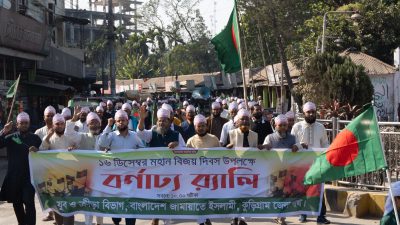 মোঃ বুলবুল ইসলাম, কুড়িগ্রাম প্রতিনিধি:কুড়িগ্রাম জেলা জামায়াতের যুব ও ক্রীড়া বিভাগের উদ্যোগে মহান বিজয় দিবস উপলক্ষে এক বর্ণাঢ্য র্যালির আয়োজন করা হয়। মঙ্গলবার সকাল ১০ টায় জেলা জামায়াতের চামড়ার গোলা কার্যালয় থেকে একটি র্যালি বের হয়ে শহরের প্রধান প্রধান সড়ক প্রদক্ষিণ করে।