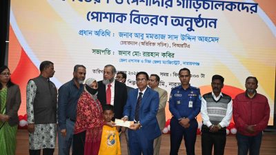 এস এম জহিরুল ইসলাম বিদ্যুৎ :নারায়ণগঞ্জ জেলায় সড়ক দুর্ঘটনায় নিহত ও আহত পরিবারের কাছে বিআরটিএ’র ট্রাস্টি বোর্ডের পক্ষ থেকে চেক ও পেশাদার গাড়িচালকদের পোশাক প্রদান করা হয়েছে।