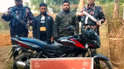 অভিযানকালে গরু চোরাচালানের উদ্দেশ্যে অবৈধভাবে ভারতে যাওয়ার চেষ্টার সময় একটি মোটরসাইকেলসহ দুইজন চোরাকারবারিকে আটক করা হয়।
