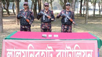উদ্ধারকৃত অস্ত্র ও গোলাবারুদ আইনানুগ ব্যবস্থা গ্রহণের জন্য লালমনিরহাট সদর থানায় জমা দেওয়ার প্রক্রিয়া চলমান রয়েছে।