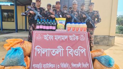 আরিফুল ইসলাম মহিন, খাগড়াছড়ি প্রতিনিধি :পার্বত্য খাগড়াছড়ির পানছড়ি উপজেলার সীমান্ত এলাকায় নিয়মিত টহল পরিচালনা করতে গিয়ে অবৈধ চোরাচালানের মাধ্যমে ভারতে পাচারের প্রস্তুতিকালে বাংলাদেশি বিভিন্ন পণ্য আটক করেছে গিলাতলী বিওপি, ৩ আরও পড়ুন